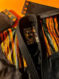 Built on a black ripstop base, reinforced at the shoulders and knees with African wax cotton featuring a vivid bamboo print in fluorescent orange and green. Inspired by the nature of bamboo — strong under pressure, yet flexible enough to bend and keep growing.Bamboo stands for resilience, growth, and resistance. This cattogi carries that energy, on the mats and beyond.