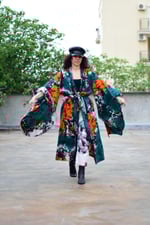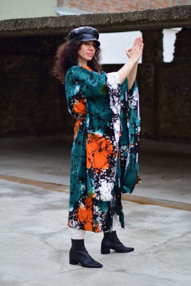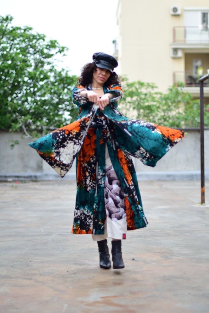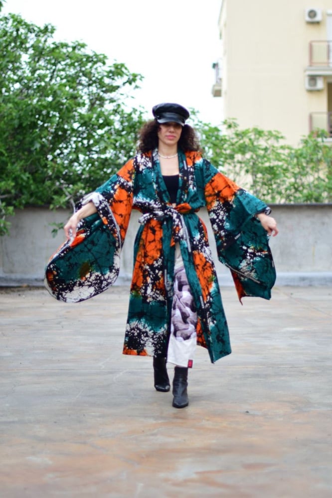 This is the kimono you wear when you want the world to stare.Green Rocks comes with that cracked-stone pattern — orange, green, white — like nature split open just for you. Raw. Textured. Alive.
