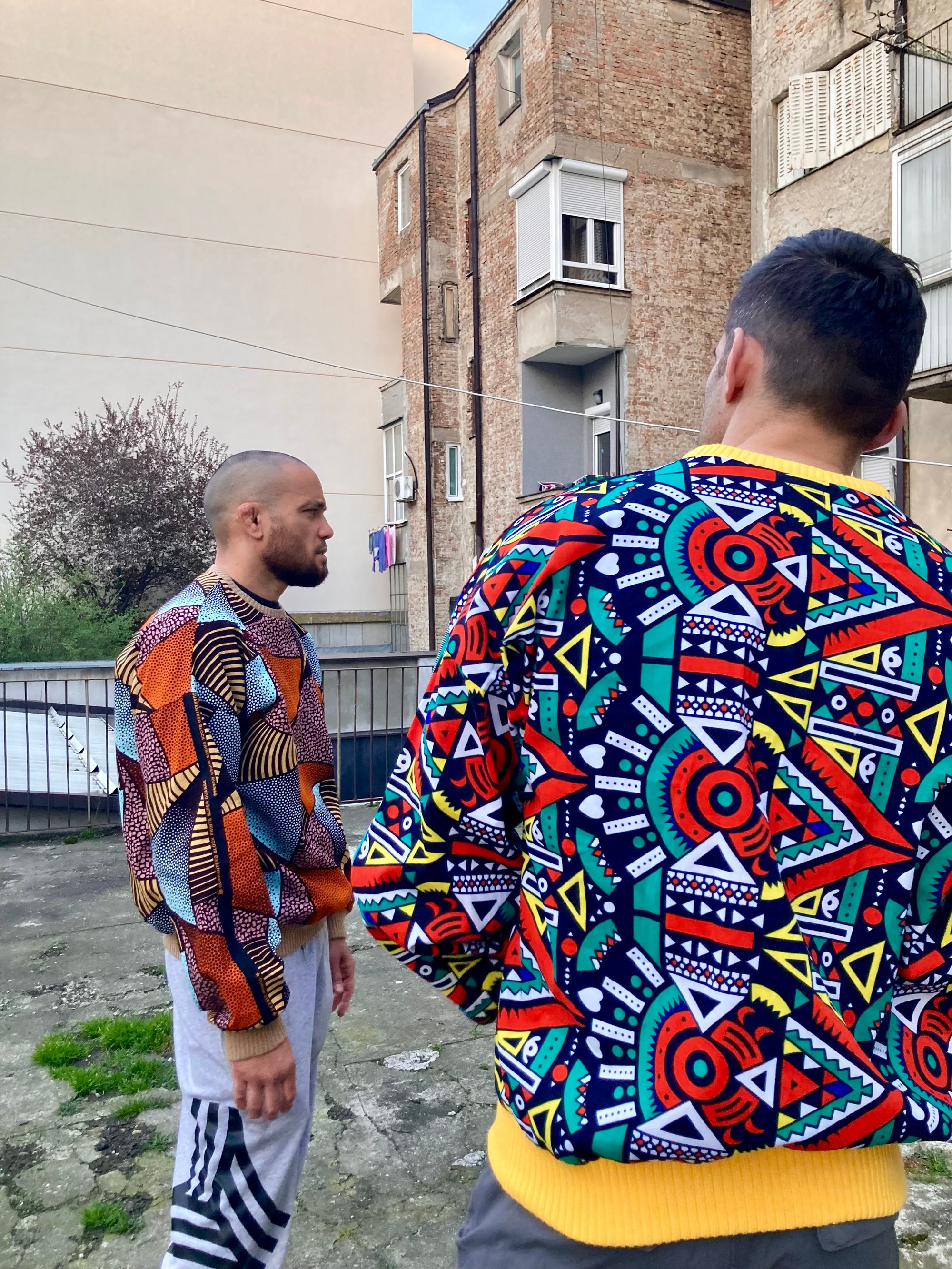 The vivid graphic print in blue, red, yellow, black, and white is inspired by traditional African motifs, symbolizing the diverse and vibrant cultures of Africa. Totem is not just a sweatshirt; it's a celebration of diversity and inclusivity.